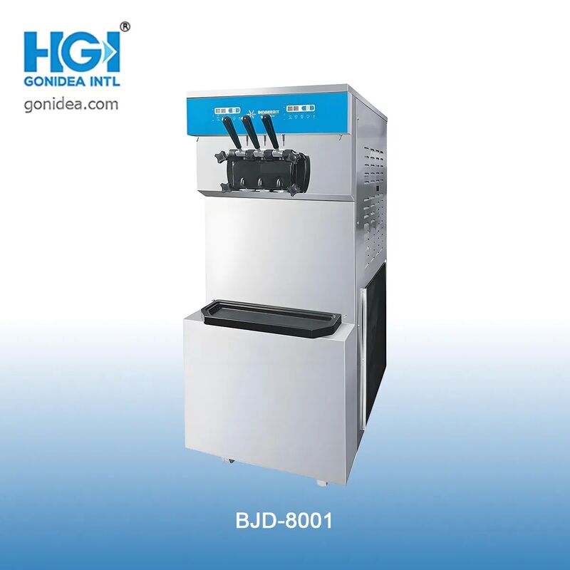 Máy chạy bằng hệ thống khởi động-đừng một xi lanh. Nó có thể đáp ứng tốt hơn nhu cầu cho các lựa chọn khác nhau. Hai máy nén Tecuumseh nhập khẩu 3HP. Nhiệt độ xi lanh đóng băng đạt -25 ° C và băng nhiệt độ kem xuống -7 °C, dẫn đến độ cứng cao và tốc độ tan chảy chậm của kem. Chức năng làm mát trước được thêm vào hopper kéo dài thời gian lưu trữ kem và làm giảm nguy cơ sự suy thoái của phân bón trong môi trường nhiệt độ cao. Máy quạt làm mát rotor bên ngoài hiệu suất cao được tùy chỉnh đảm bảo hiệu quả tiêu hao nhiệt tốt hơn. Hệ thống điều chỉnh cao cấp + logic điều khiển thông minh. Đừng lo lắng về các vấn đề của xi lanh đóng băng không xả, và kem mềm trong khi hoạt động liên tục.